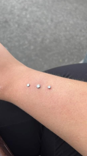 IIch arbeite nur mit meinem eigenen Schmuck, da dieser Steril ist und ich sicher bin welches Material es ist. Denn zum Ersteinsatz verwende ich nur Titan und PTFE.